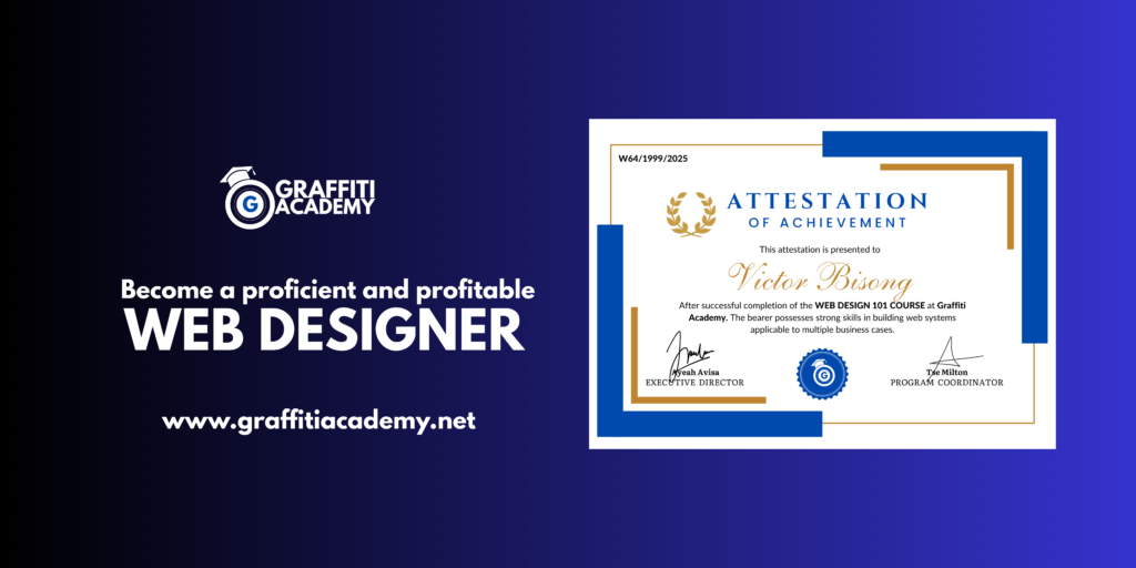 For ambitious young people seeking to take the Web Design skill as a business or freelance sercice, we practically hold your hands, sharing our wealth of experience at each stage, guiding you through the do’s and don’ts of the Web design business untill you start to see real results – Attract clients, design, deliver, get paid and repeat the process.